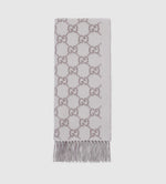 Bonnet et Écharpe en jacquard de cachemire GG ivoire et gris clair